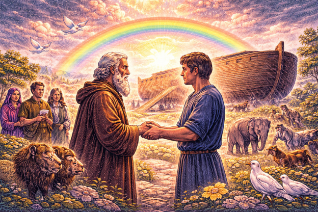 Dios mismo también hace pactos con el género humano y su pueblo. ¿Por qué sería necesario que Dios hiciera pactos con los seres humanos? Pues bien, esto es necesario por la caída en el pecado. A causa de la caída en el pecado, a menudo hay incertidumbre en la relación entre Dios y nosotros. Y así, Dios considera necesario garantizar formalmente su compromiso con nosotros, así como su compromiso con sus propósitos para nosotros y su mundo. Esta es también la razón por la que hace un pacto con Noé.