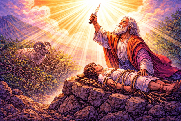 En nuestra lectura bíblica, Dios prueba el compromiso íntegro de Abraham de ser su cabeza representativa redentora en este mundo por amor al mundo, mandándole tomar al hijo que había esperado 25 años para que naciera y sacrificarlo como holocausto, de manera semejante a como los cananeos sacrificaban a sus hijos. Porque Abraham vivía ciertamente en el Espíritu por la fe, siendo receptivo a la voz de su Dios, abierto a su provisión y disponible a la guía del Espíritu, pasó la prueba de Dios. Esto se ve en su partida inmediata de su hogar, en su decir a los siervos que él e Isaac regresarían, en su creencia de que Dios proveería un sacrificio, en su levantar el cuchillo para sacrificar a su hijo y en su creencia de que Dios resucitaría a Isaac de los muertos si lo sacrificaba (He 11:19).