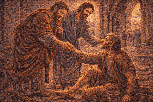 Sugerencias para la oración: A veces nos sentimos como mendigos cojos y solo queremos las cosas que el mundo quiere. Ore para que Dios le ayude a dar gracias por sus bendiciones y compartir las riquezas de su gracia.
